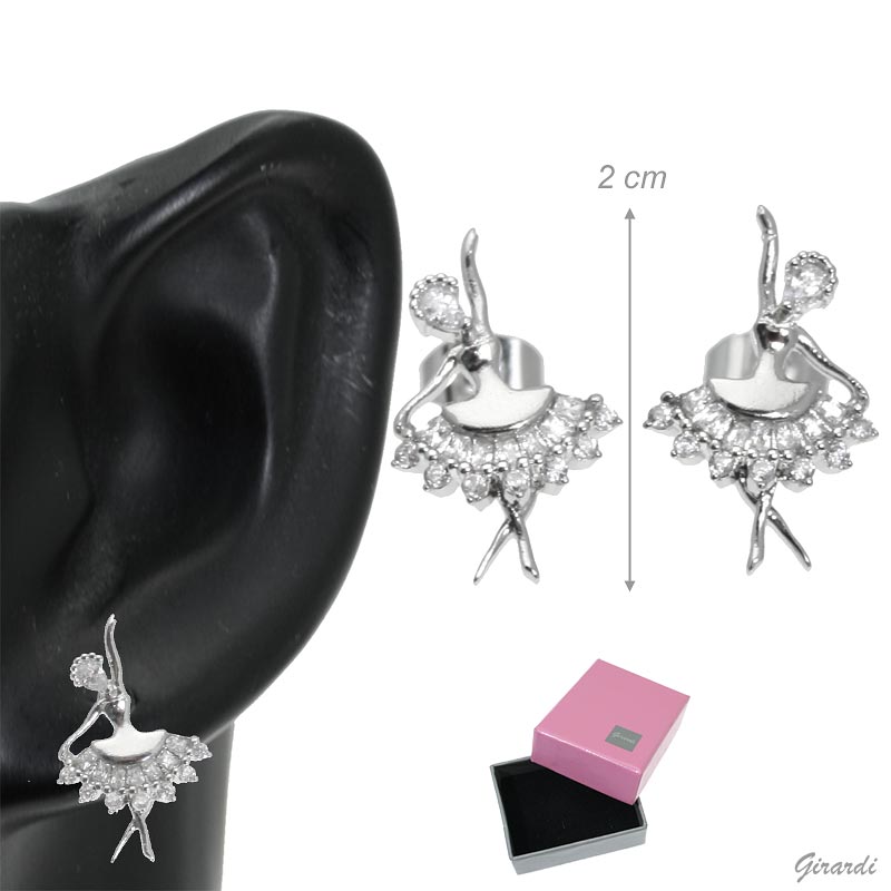 Brass stud earring wih ballerina and zircons