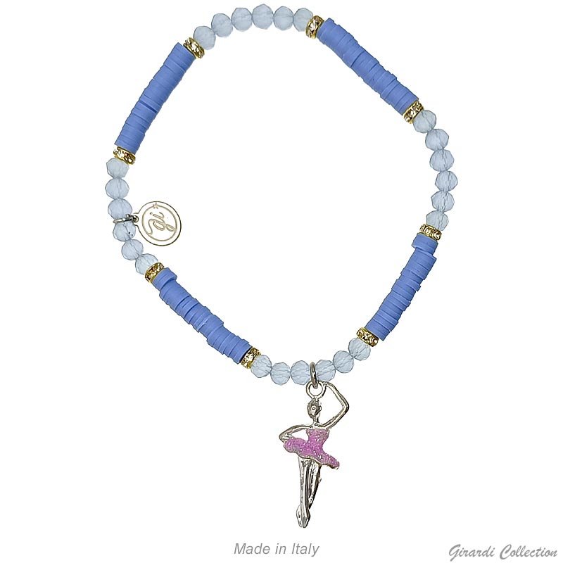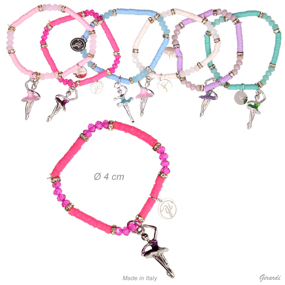 Elastic bracelet made of beads and rhinestones, enamelled glitter ballerina
