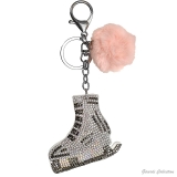 Metal key ring with rhinestone ice skate and pom pomLength approximately 15cm.