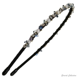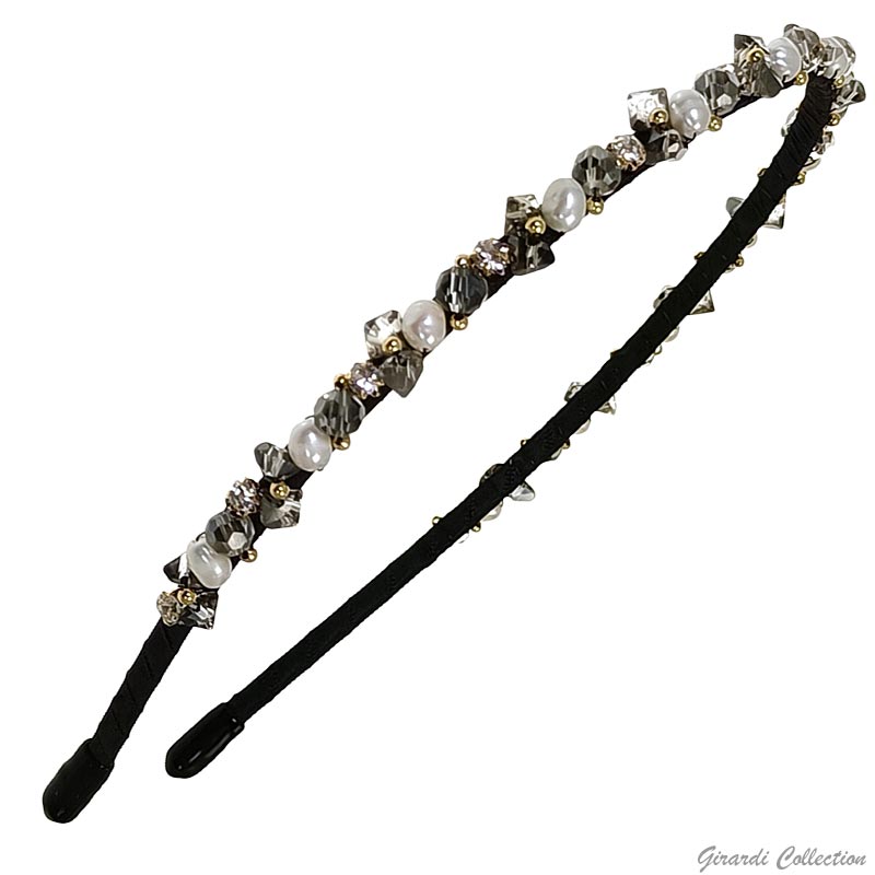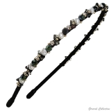 Metal headband covered with gros grain ribbon, decorated with coloured crystals and rhinestones.
