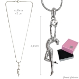 Hypoallergenic metal necklace plated in platinum with gymnast and hoop