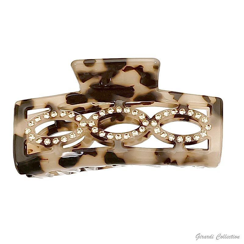 Pinza in lastra acrilica maculata con strass