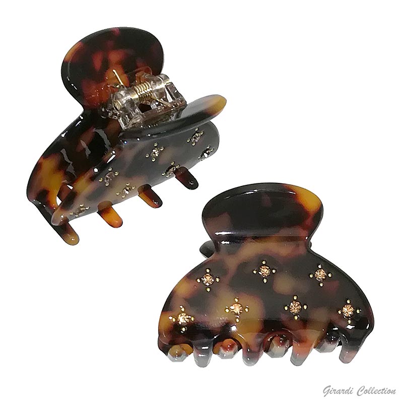 Pinza in lastra acrilica maculata 6,4 cm con strass